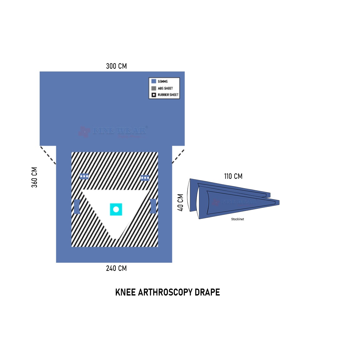 Knee Arthroscopy Drape manufacturer Dhwanit Enterprise (FINE WEAR) Is Leading Manufacturer Of Surgical Drape. At Dhwanit Enterprise, under the brand FINE WEAR, we proudly manufacture high-quality Knee Arthroscopy Drapes designed for precision, sterility, and ease of use in orthopedic procedures. Our drapes provide targeted access for arthroscopic knee surgeries with fluid control, strong adhesive borders, and EO sterilization for patient safety. 🔹 Key Features: U-cut fenestration for knee joint EO Sterile & ready to use SMS or Spunlace fabric – absorbent and fluid-resistant Integrated pouch for fluid collection Perfect for knee arthroscopy, ACL, and meniscus repair Trusted by hospitals and OT suppliers across India, we offer bulk supply, OEM, and private labeling. FINE WEAR by Dhwanit Enterprise – Your Trusted Partner for Surgical Drapes
