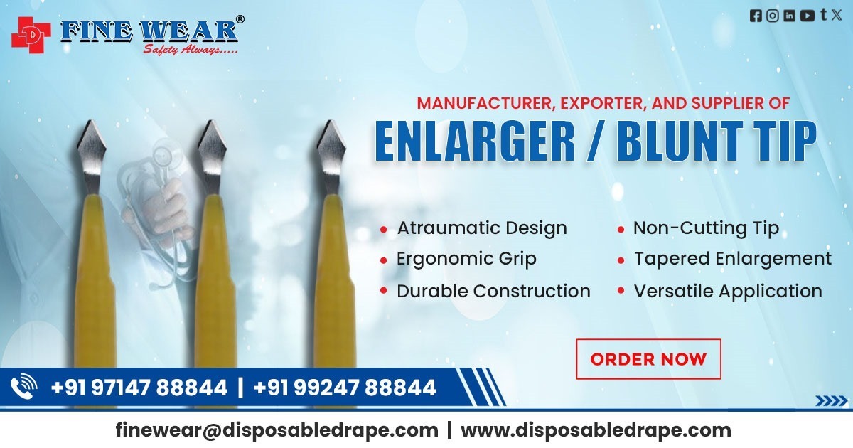 MEDICAL BLUNT TIP BLADES MANUFACTURER IN INDIA. Dhwanit Enterprise is a trusted supplier of MEDICAL BLUNT TIP BLADES, manufactured at our facility in Ahmedabad, ensuring high precision and consistent quality for ophthalmic procedures. Key Points: Premium Quality: Made from high-grade stainless steel for precision and durability, Blunt Tip Design: Ensures controlled tissue enlargement with minimal trauma, Individually packed for safe surgical application and all blades are sterile and ready for immediate use. Ophthalmic Use: Ideal for delicate eye surgeries and incision enlargement Multiple Sizes Available: 45° Angled 4.0 mm (440022) 45° Angled 5.1 mm (440025) 45° Angled 5.2 mm (440026) 45° Angled 5.5 mm (440027) Bulk Supply: Available for hospitals, clinics & distributors, Fast Delivery & Competitive Pricing, Why Choose our product first? Trusted manufacturer & supplier, Strict quality control standards, Wide range of surgical drapes & accessories, Reliable customer support. Application: Used in ophthalmic surgeries for safe incision enlargement and controlled manipulation. For more inquiry, Please visit our website: WWW.disposabledrape.com